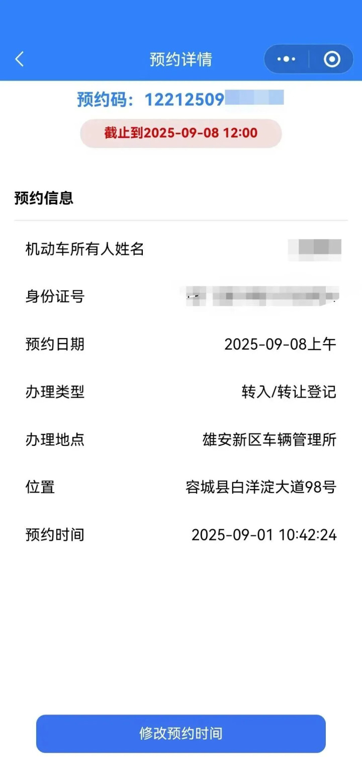 预约信息需是车主本人信息,不允许其他人代为预约,预约信息半个工作日内有效。