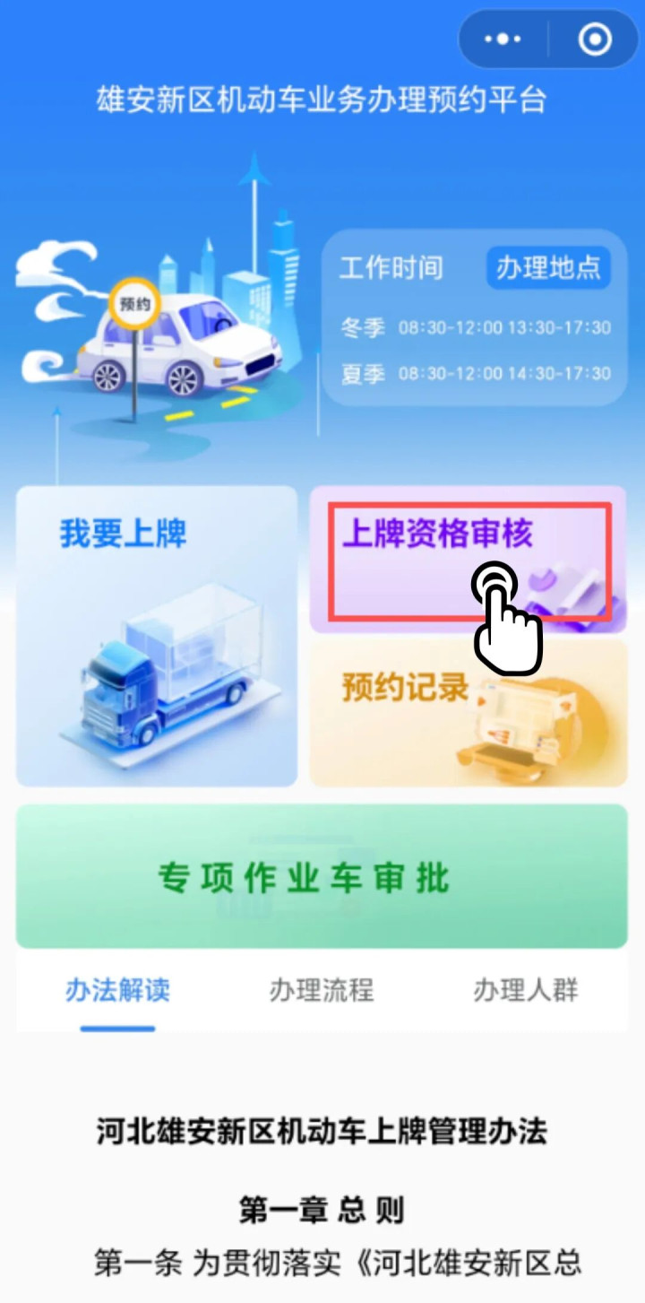 在雄安,业务办理、上牌资格审核、