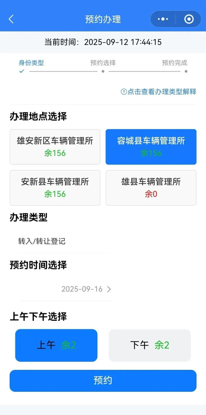 户籍和居住证人员办理旧车转入、旧车过户业务时,新区企业办理新车注册、旧车转入、旧车过户业务应具备有效期内预约信息,没有预约信息则会提示您需要进行预约后办理。